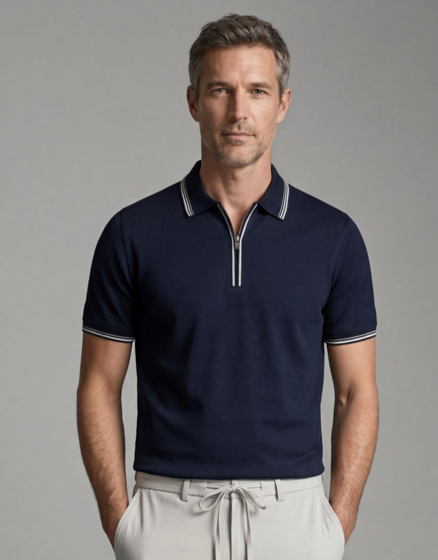 Pola Yaka Fermuarlı Merserize Tişört | vitrin-formen